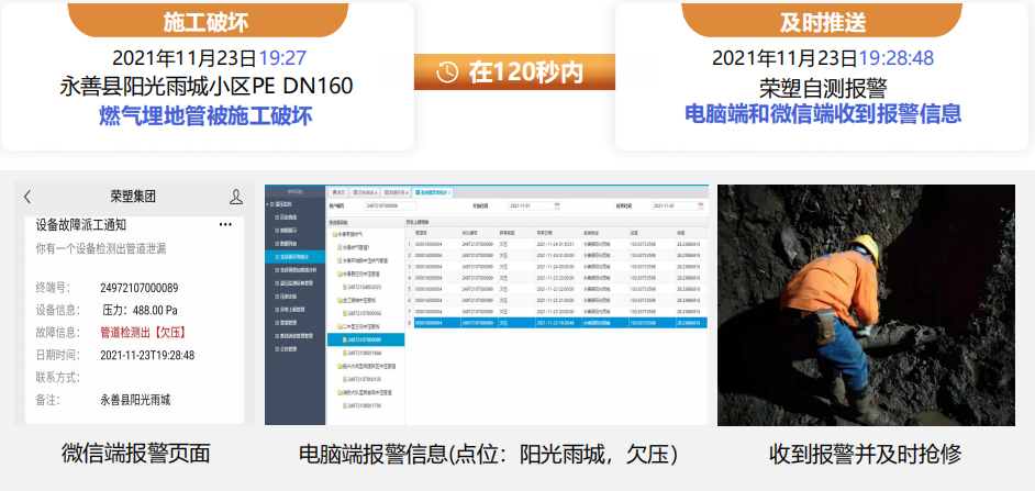 *2021年11月23日晚上,燃气管道被破坏,收到报警信息。